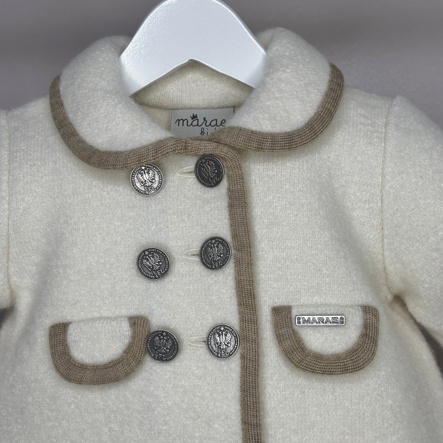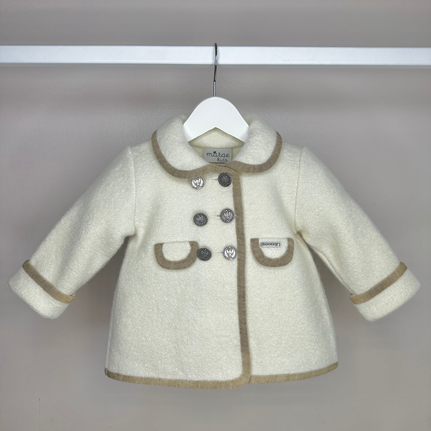 Girls Cream Marae Coat With Camel Trim