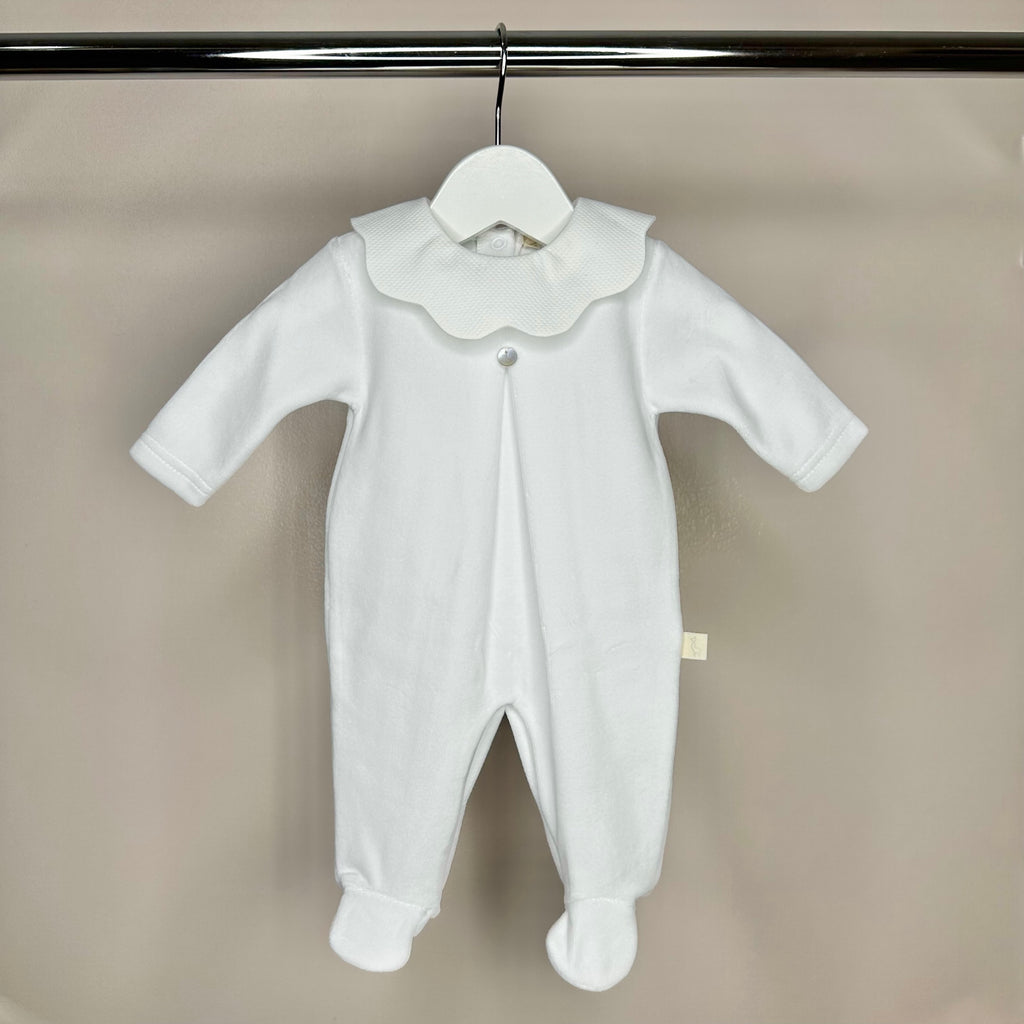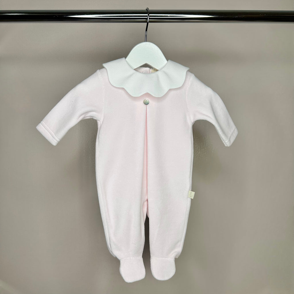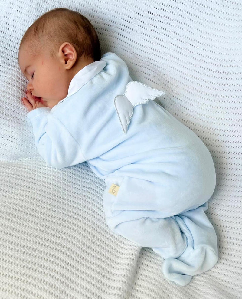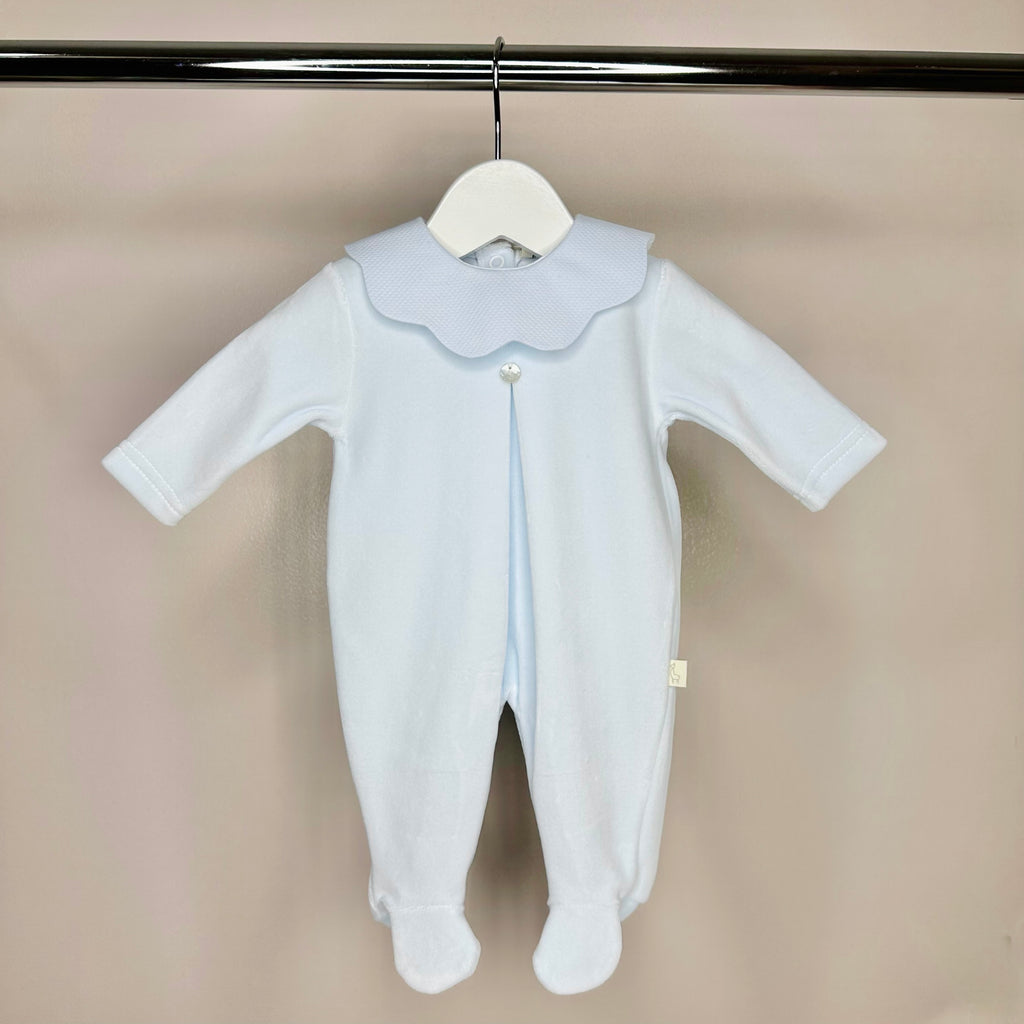 Blue Velour Babygrow with Collar