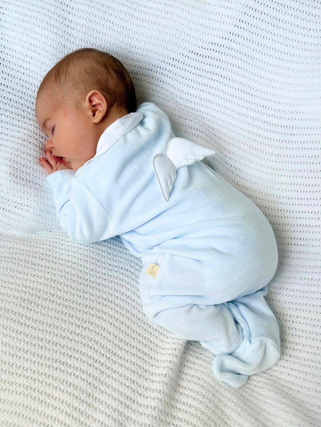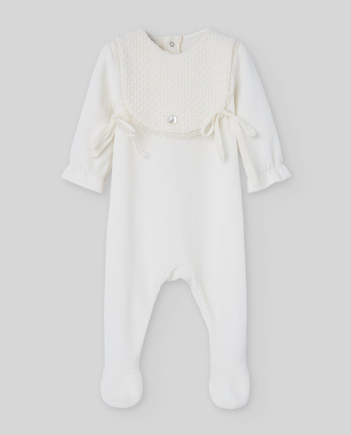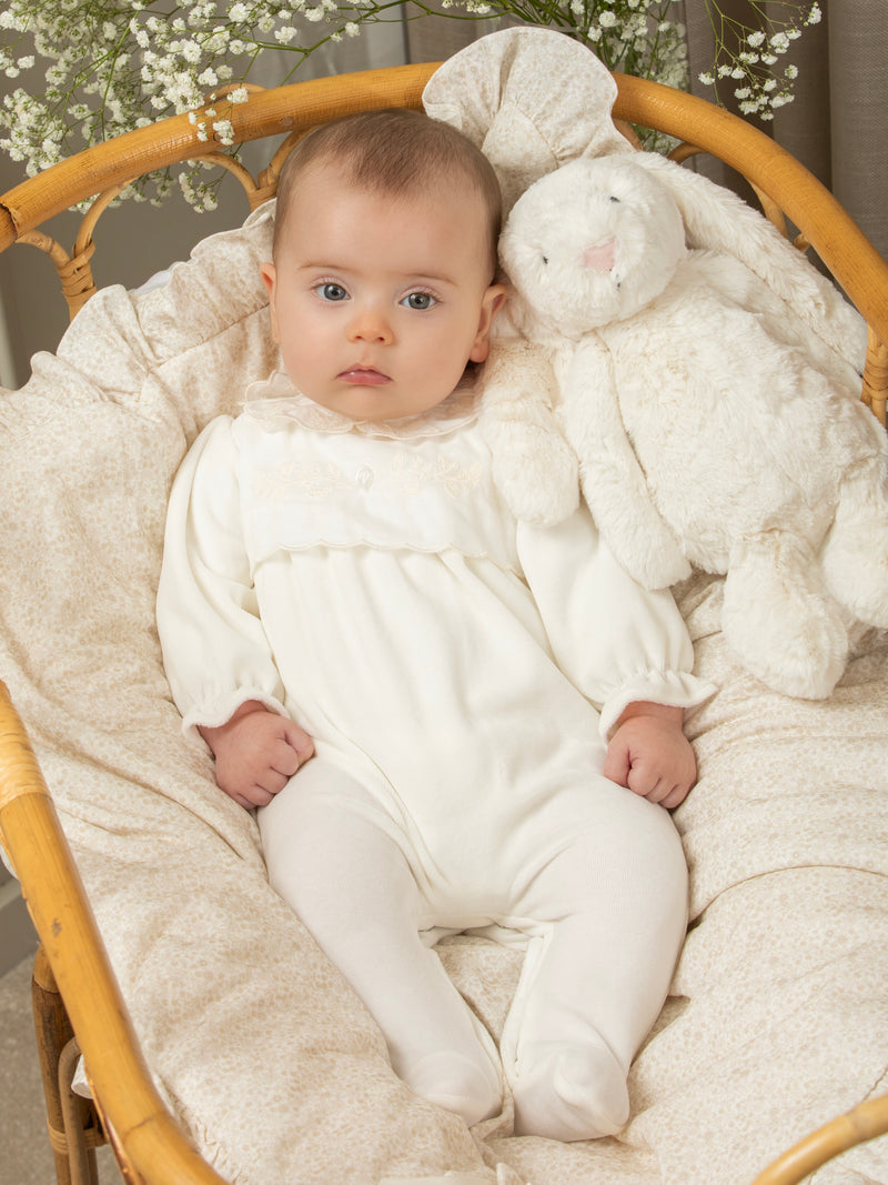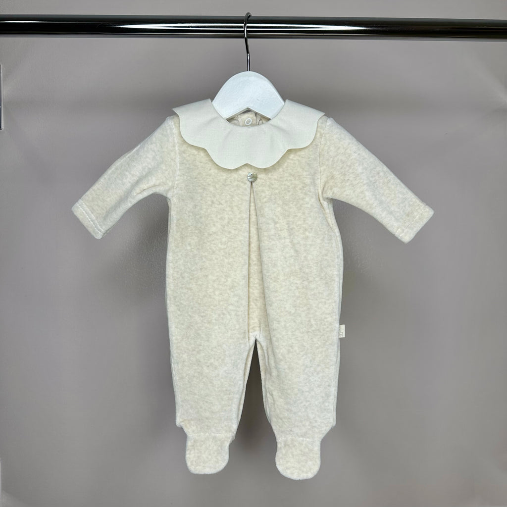 Blue Velour Babygrow with Collar