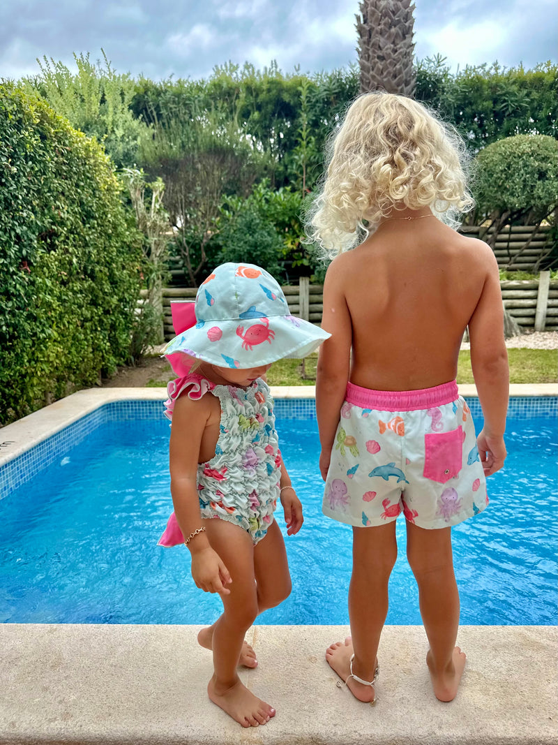 Pink Ditsy Floral Smocked Dress & Pant Set