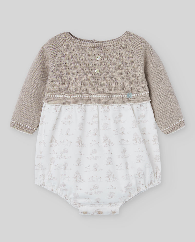 Beige Cotton & Cashmere Toile de Jouy Romper