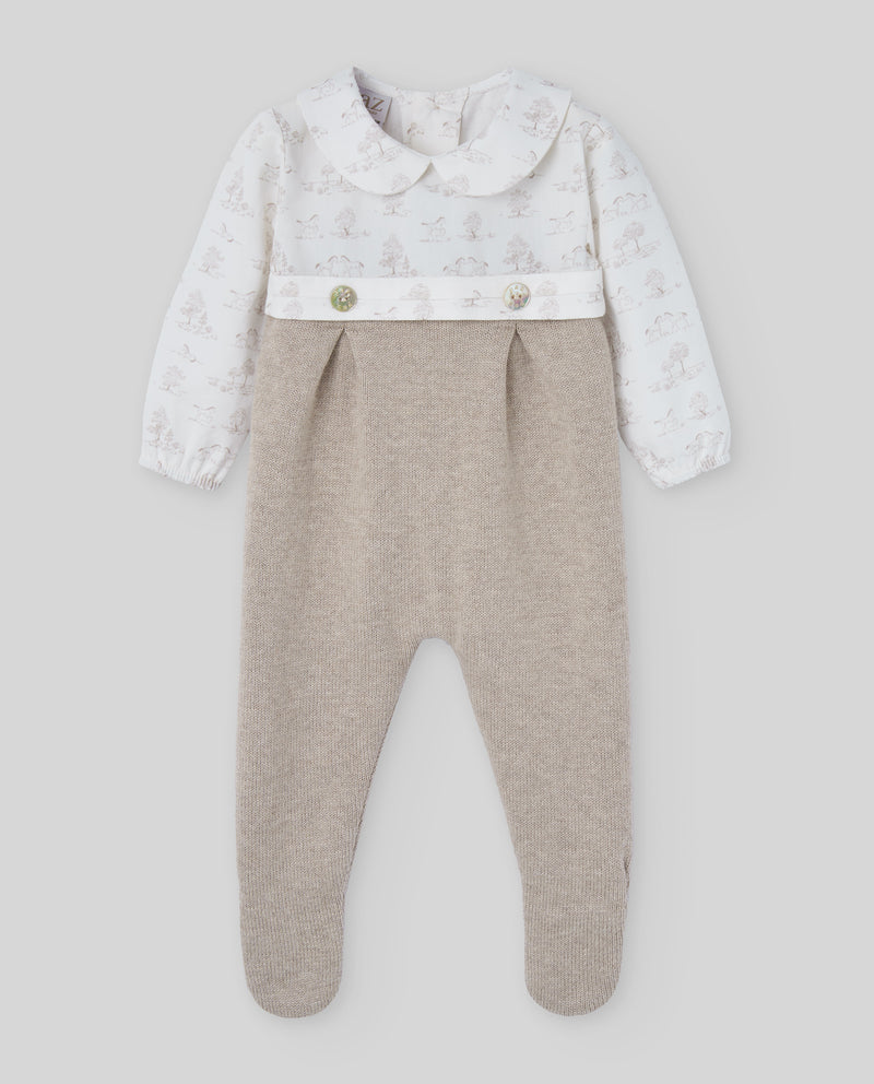 Beige Cotton & Cashmere Toile de Jouy Babygrow